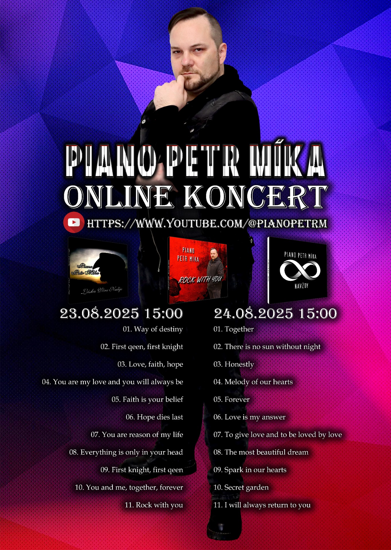 MOJI DRAZÍ FANOUŠCI A POSLUCHAČI, už nám začal měsíc červen a já mám pro vás konečný setlist a datum mého online koncertu.